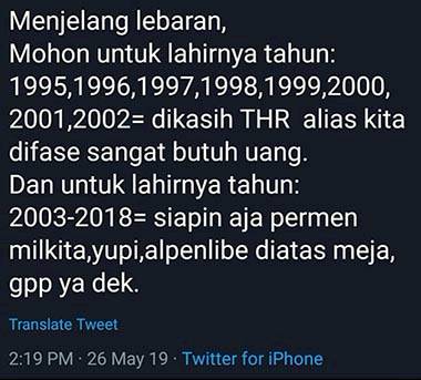 Hayo, buat yang lahirnya tahun 1994 ke belakang sudah waktunya untuk gantian bagi-bagi THR ke yang lebih muda, dong.