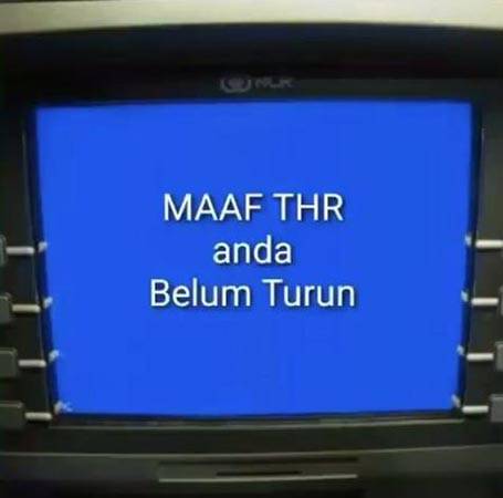 Dikabarkan mesin ATM rusak akibat dipaksa mengeluarkan duit THR ramai-ramai. Saat ini THR untuk yang membutuhkan masih dalam perjalanan.