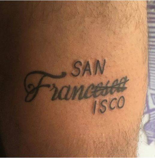 8. Ini kocak! Tato nama mantan yang bernama Fransisca dipelesetkan jadi San Fransisco.