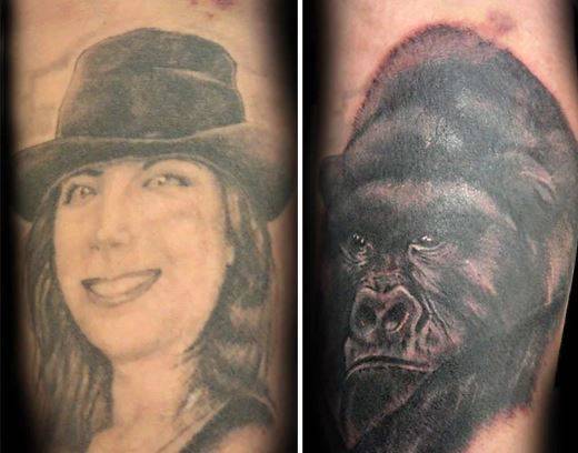 4. Ini nggak kalah kocak, tato wajah mantan diubah jadi wajah gorila.