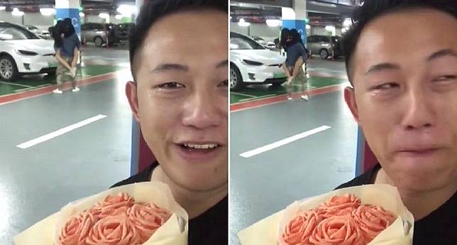 Sekilas, mungkin kalian nggak akan melihat sesuatu yang aneh dari foto-foto si cowok saat memegang buket bunga di tempat parkir tersebut.